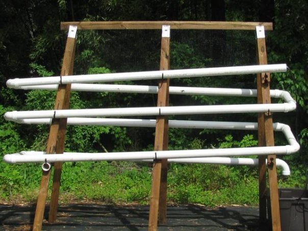 Os sistemas NFT podem ser muito eficientes em termos de espaço e permitem que você seja inovador com o uso do espaço disponível. Espirais e sistemas de empilhamento vertical são uma maneira popular de montá-los. Confira essas imagens de sistemas caseiros Nutrient Film Technique.
