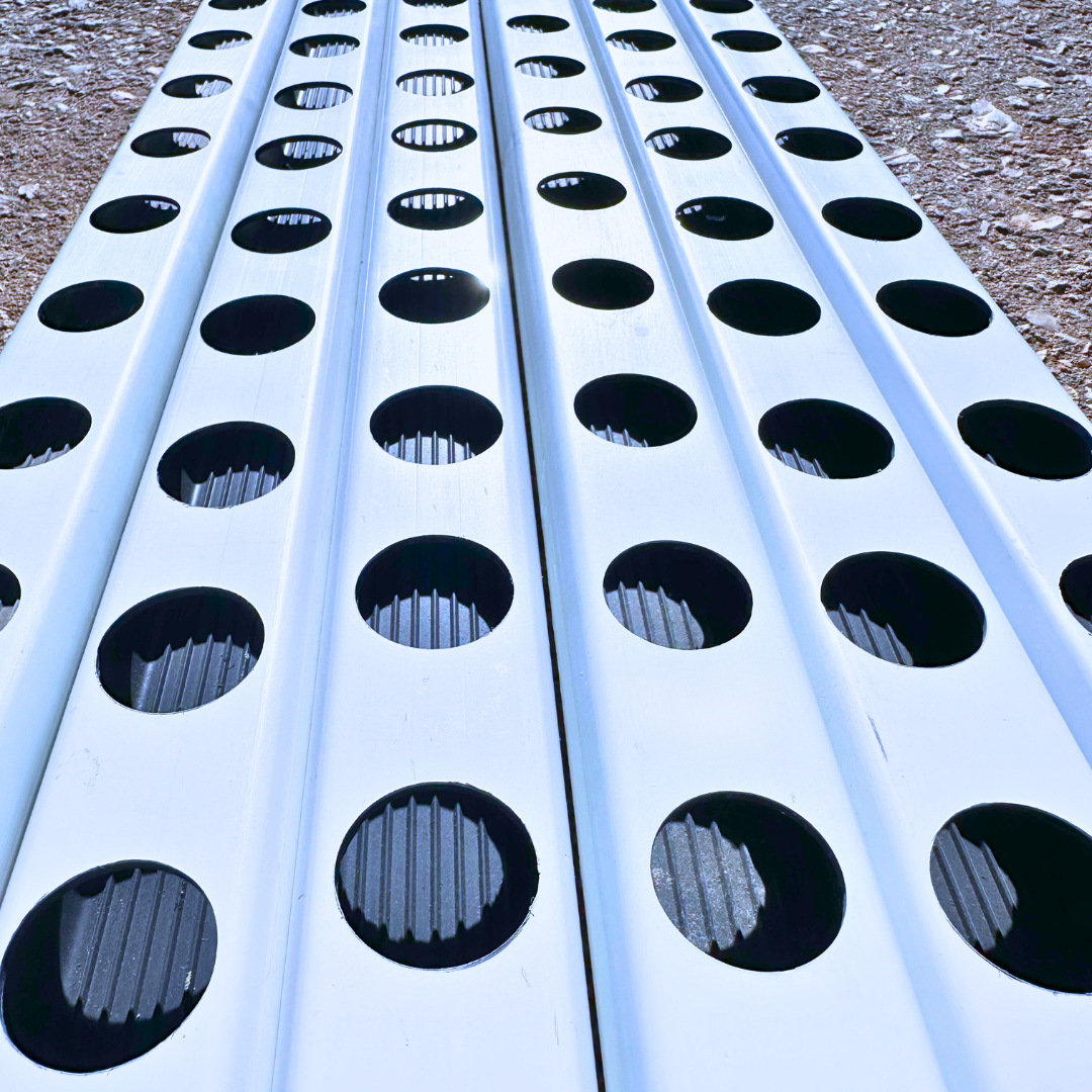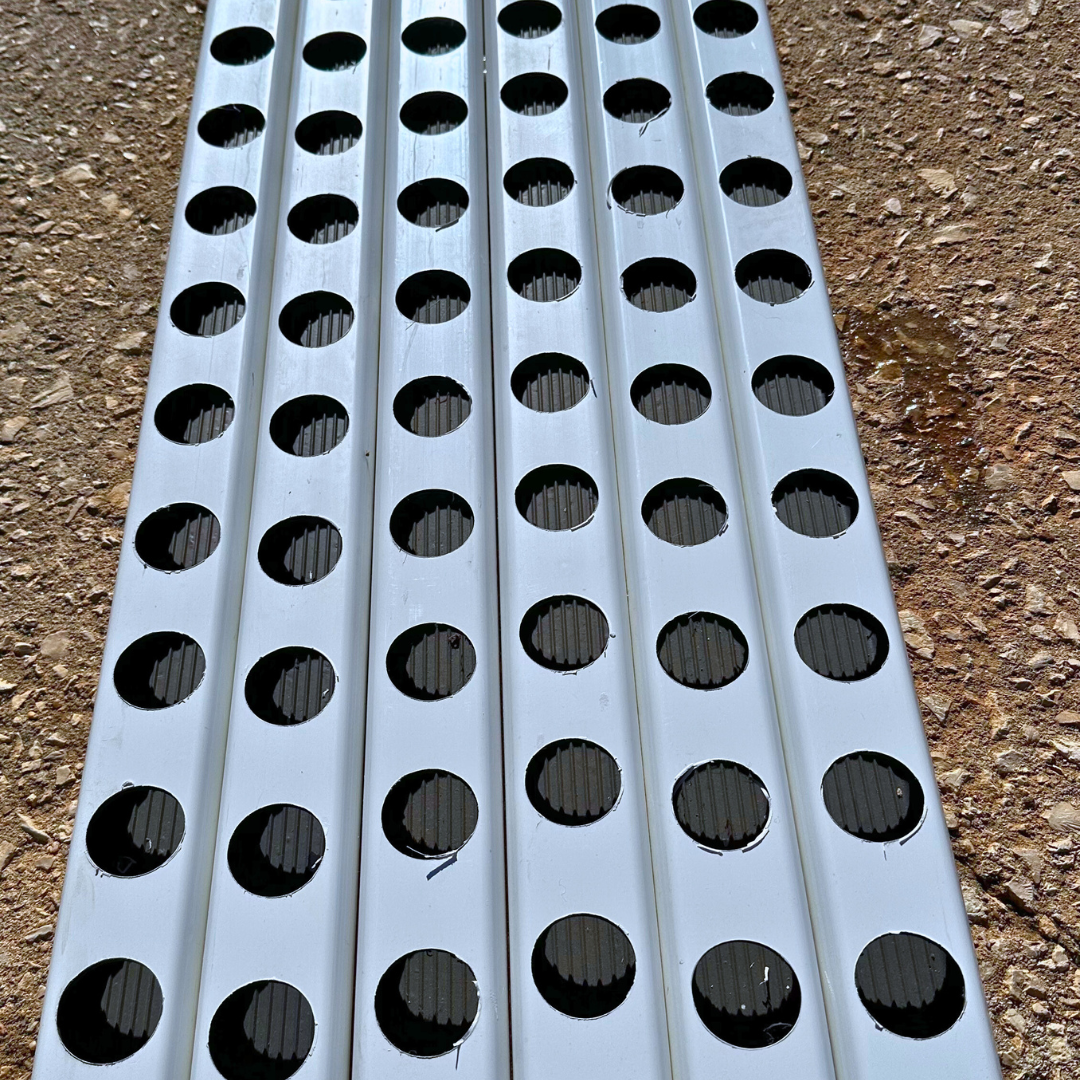 Perfil Hidroponico Furado de 80mm usado para aplicação em linhas de produção.