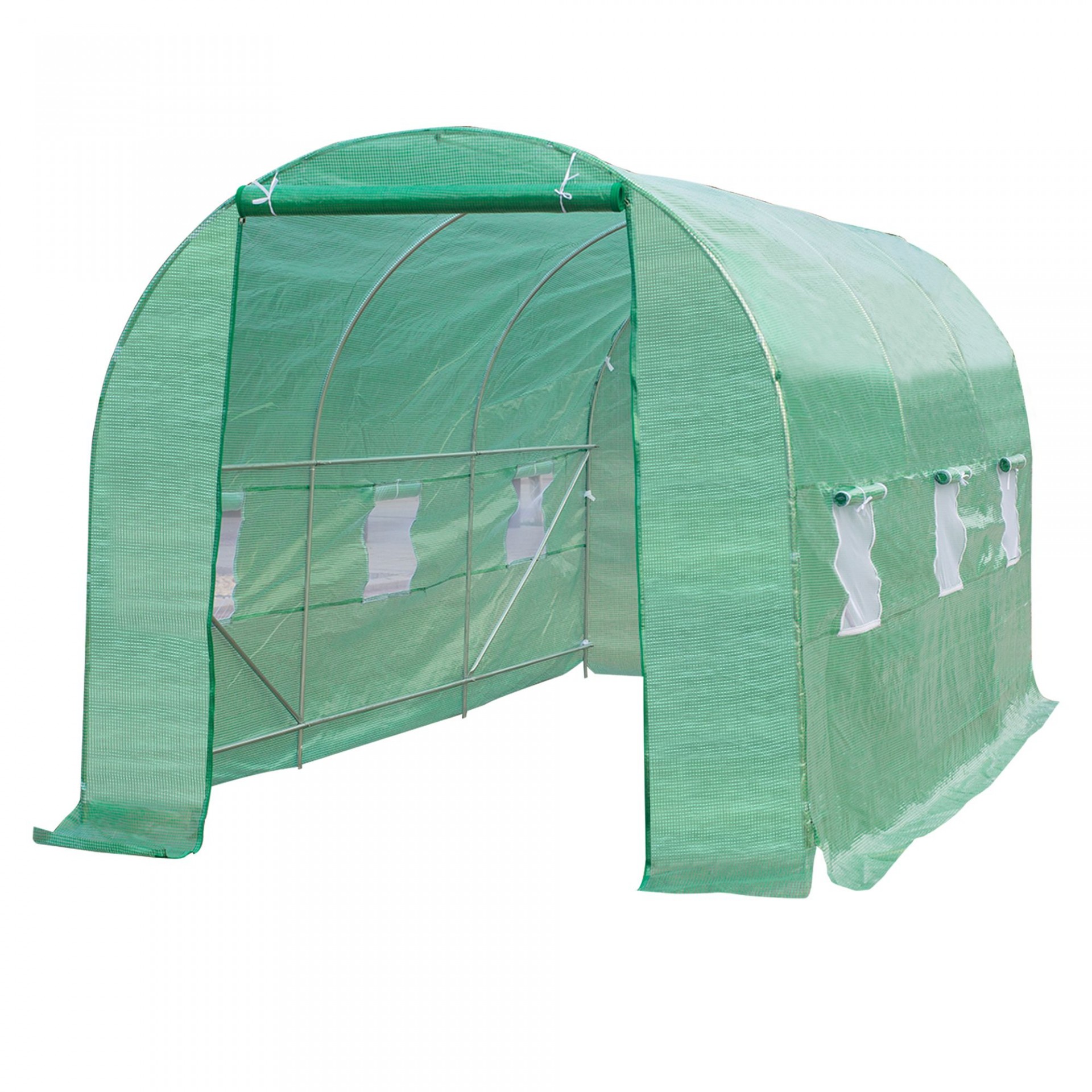 Esta estufa 450 x 200 x 200 cm é construída em Aço e Polietileno para proteger as suas plantas e ficará perfeita no seu espaço exterior. O tecido lateral da estufa é 20 cm mais comprido do que a estrutura de metal. A borda inferior pode ser enterrada no solo ou por cima com pedras para potencializar o efeito estufa.