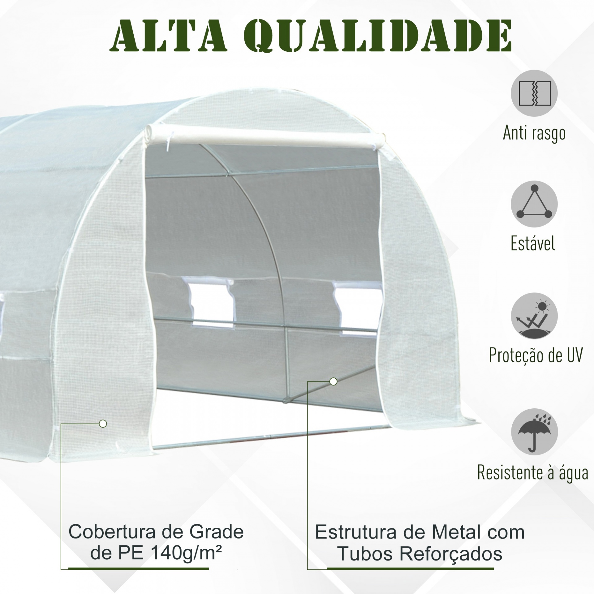 - Filme resistente, durável e anticongelante que protege as plantas das intempéries