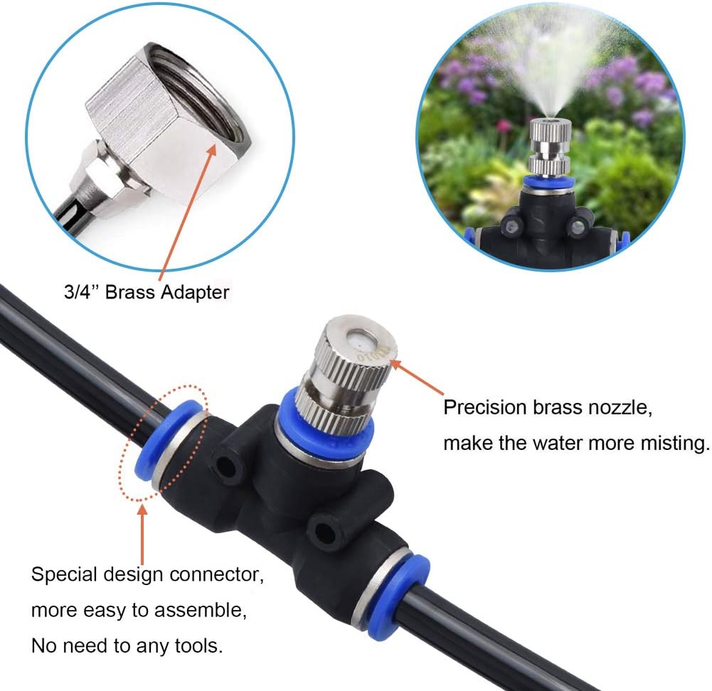 - 1 x 18 m Linha de nebulização (mangueira de fornecimento de 3 m com adaptador de torneira de água padrão 15 m pré-1 x 1 linha de nebulização fabricada)
