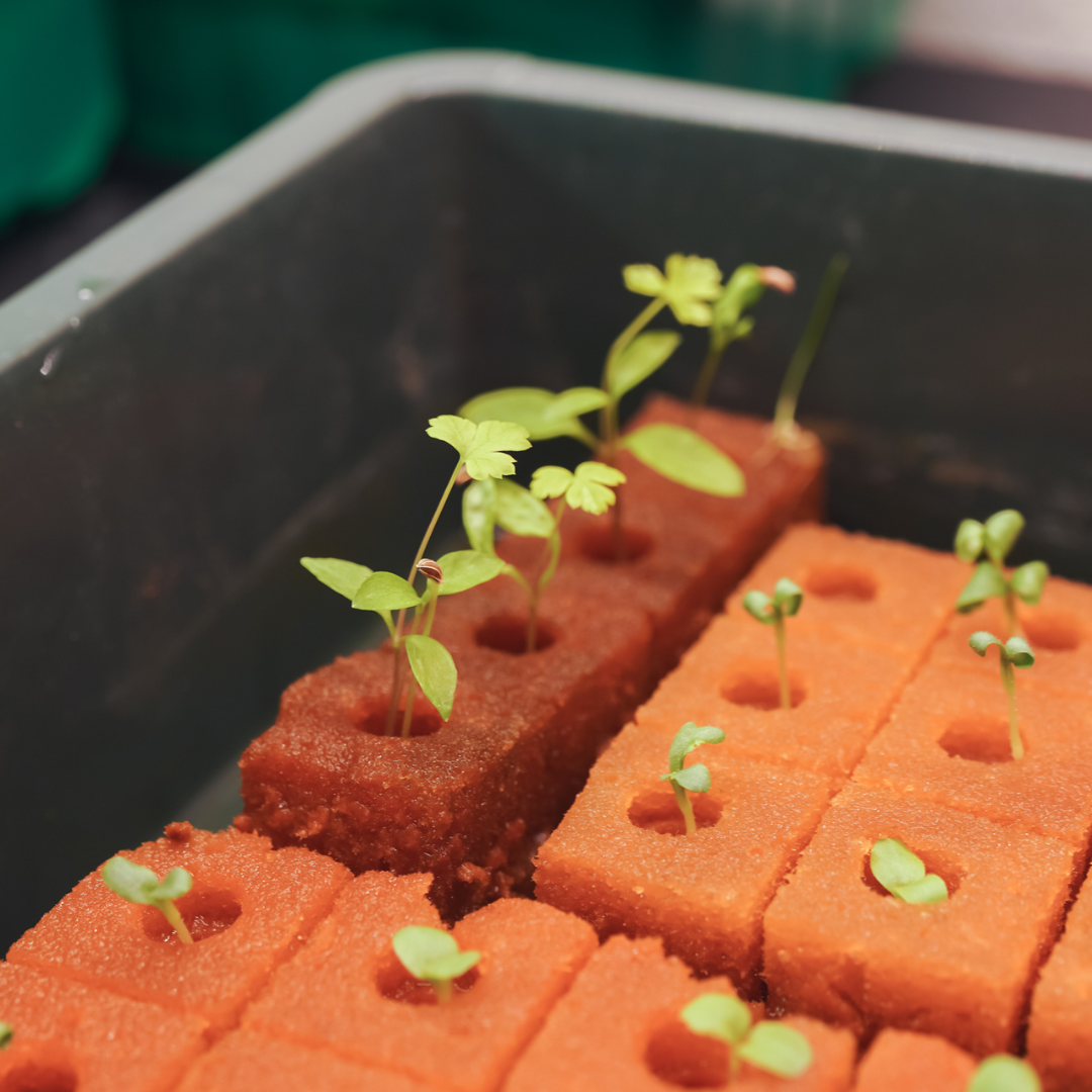 Deixar a placa num local com sombra e manter a espuma húmida com água até o aparecimento das primeiras folhas (cerca de 48 horas), utilizando um spray manual;