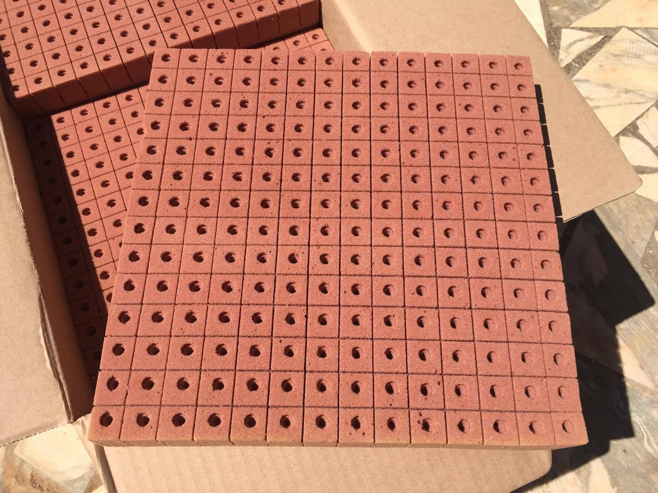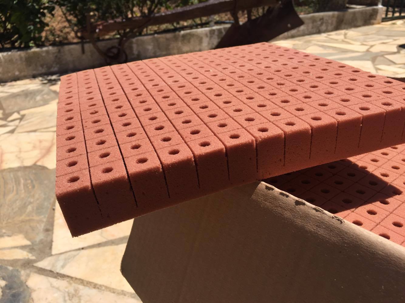 A placa já vem furada e os alvéolos tem a medida de: 2,0 x 2,0 x 2,4 cm.