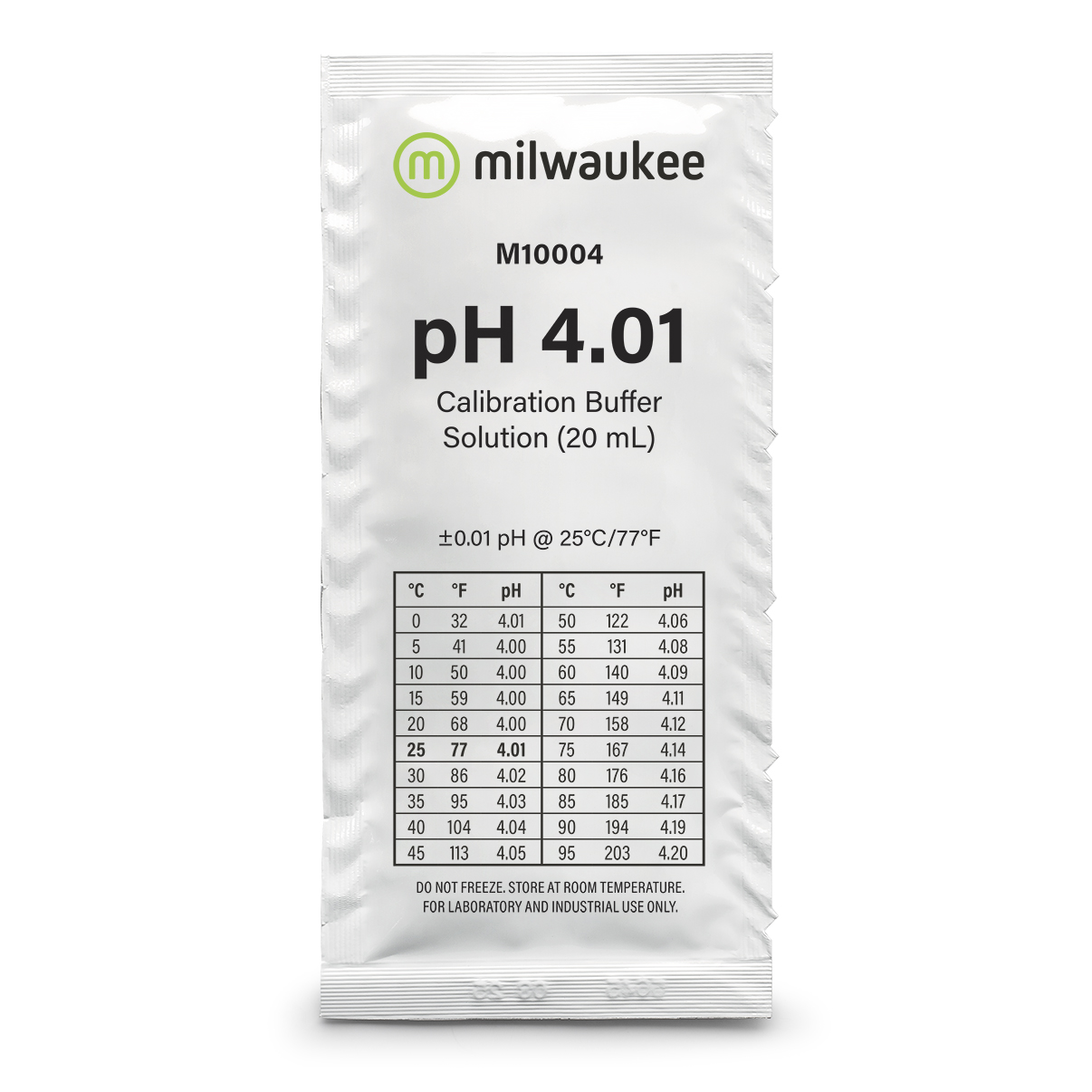 Saquetas de 20 ml (como tampão acima de 20 ml de calibrador pH 4,01) são apenas para uso único. As saquetas são vendidas à unidade, 1 un = 1 saqueta.
